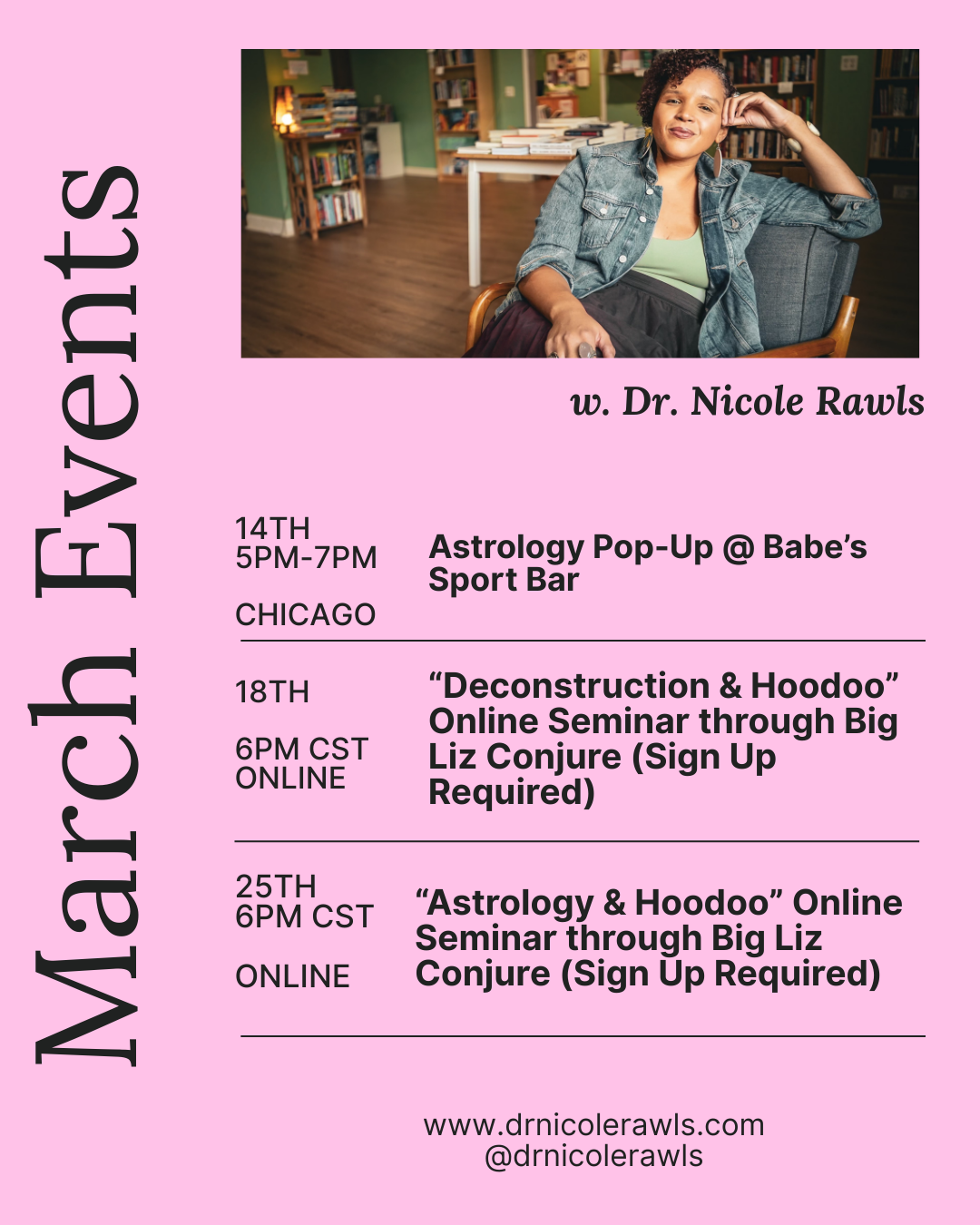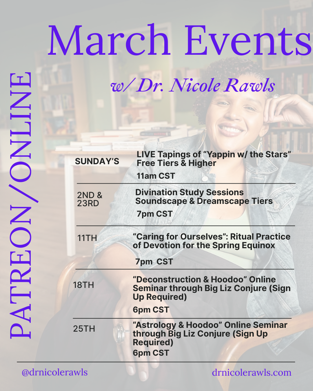 Then I am online on the 18th teaching my “Deconstruction & Hoodoo” course through Big Liz Conjure. I’ll be getting into the ways we break from these colonial projects as a way to come back to the Self - a key part of the Trinity of Hoodoo.